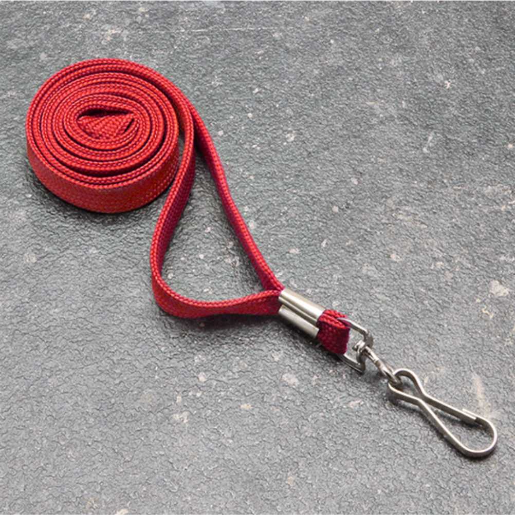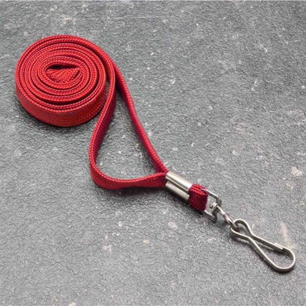 Fita de suspensão no pescoço em banda para crachá com gancho rotativo. Dimensão: 1 x 90 cm. Cor: vermelho. Quantidade: 100 unidades.