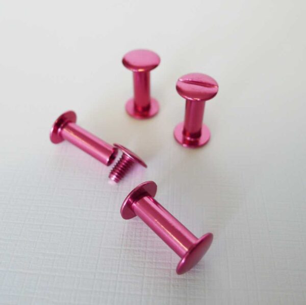 Parafusos de rosca metálico rosa com 15 mm de capacidade. Quantidade: 100 unidades.