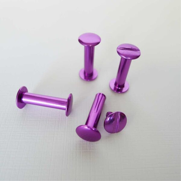 Parafusos de rosca metálico violeta com 20 mm de capacidade.